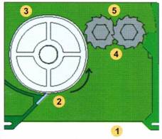 2. Solids are captured and directed into the cutting chamber by rotated screening drum.